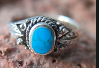Bague-Navajo-western-mode - Bague navajo en argent 925/000 (poinçonnée "sterling") et une turquoise
