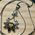 Collier dreamcatcher fantaisie - tissage coloré deux tons bleus , breloques, perle et pompon