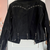 Gilet-Rebels-western-mode - composition : peau retournée avec os (pas du plastique) et conchos - franges sur les manches - coloris : noir - TBE