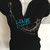 T-shirt-Paco-western-mode débardeur noir avec guitare strass de la marque Paco Rabanne - dessin d'une guitare en Strass noirs et brillants en bas à droite, logo de la rose en rose et inscription Back XS en blanc étiquette Paco Rabanne parfums, TU, 100% coton Dos : manche de la guitare en strass (continuité du dessin de devant) inscription Paco Rabanne en blanc en haut - 100 % coton